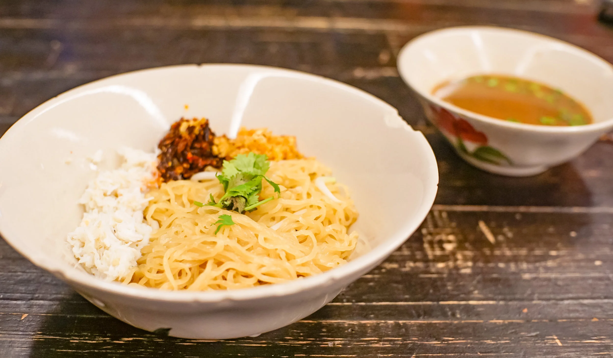 The Bah Mee consisted of mee kia noodles, crab meat to the left, and chilli flakes and fried minced garlic in the background.
