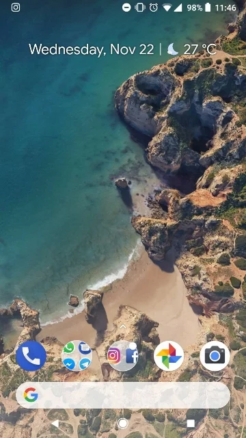 The Google Pixel 2 home screen. "Live" wallpapers, with subtle animations in the background, are enabled by default.